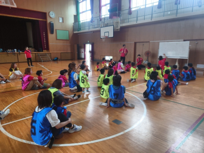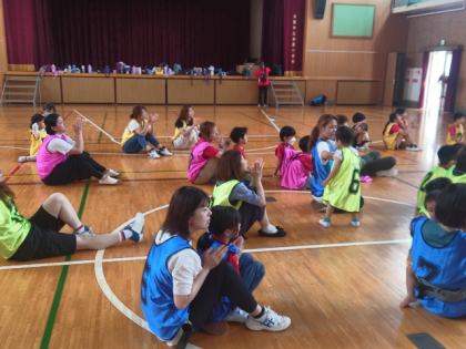 午前中は、障害物リレーやバスケットボールリレーなどのスポーツで、親子で楽しく汗を流しました。