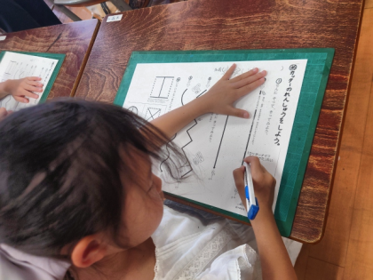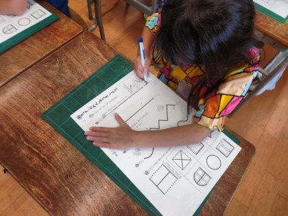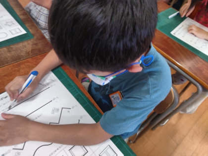 図工科の時間は、線にそってカッターナイフを使って、紙を切っていきます。