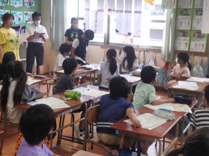 子どもたちは、「マイバッグを使う」「使い古したもの服をぞうきんにする」「牛乳パックをまな板にする」「賞味期限が近いものから買う」など資源を無駄にしないことや再利用することなど、日頃から自分なりにできそうなことを考えていました。