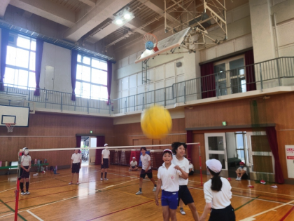 体育科の時間は、体育館でソフトバレーボールを学習しました。