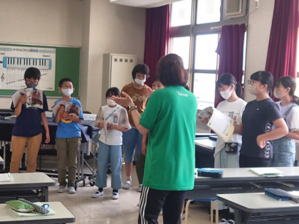 音楽科の時間は、教科書の「バナハ」の曲をグループに分かれて楽しく歌いました。