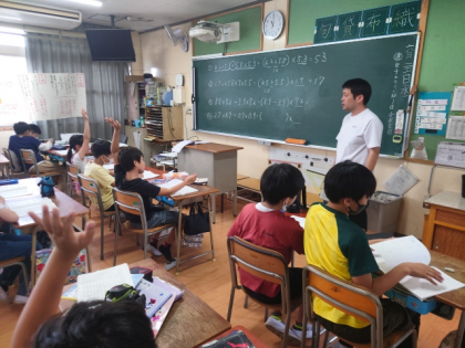 算数科の時間は、計算ドリルの「小数のかけ算を使う問題」に取り組んでいます。