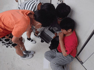 グループで協力して動画を撮影しています。