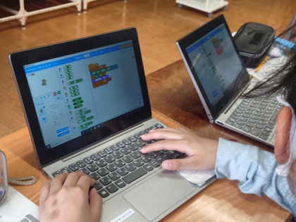 今日は、Scratchの「乱数」のブロックを使って、コンピュータに問題を考えさせ、ずっと出題させ続けるプログラミングを組み立てました。