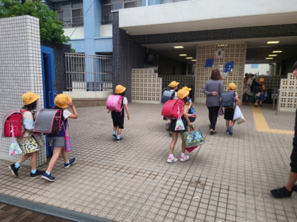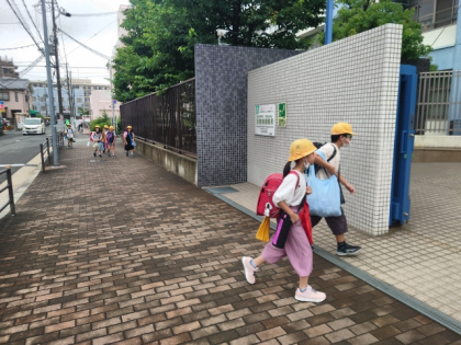 今日も正門でPTA会長さんが正門で子どもたちの登校を見守っておられました。