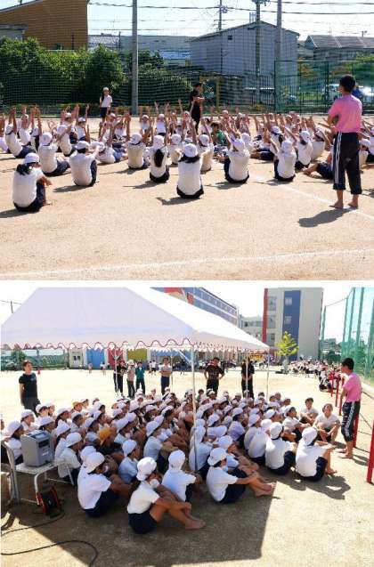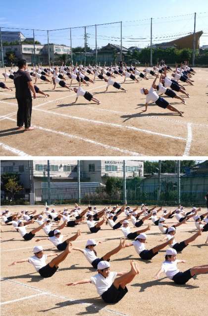 5・6年生が運動場で本格的に練習がはじまりました。テントもはりました。