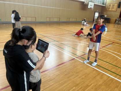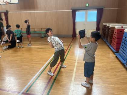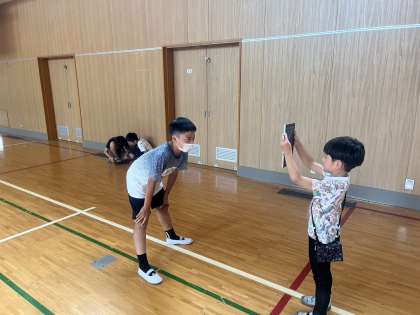 そして、講堂に移動して、カメラ機能を使って6年生を撮影しました。