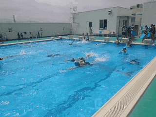 よいお天気で、気温が高いため、子どもたちは気持ちよさそうにプールでの学習を楽しんでいました。