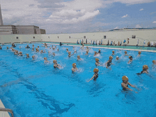 今日は、音楽に合わせて、水慣れ、けのび、ばた足を練習しました。