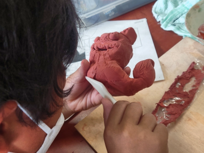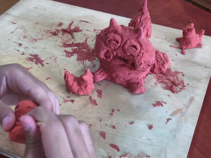 図工科の時間は、ねんどを使ってシーサーを作っています。