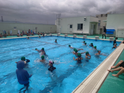 子どもたちは気持ちよさそうにプールでの学習を楽しんでいました。