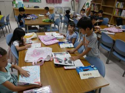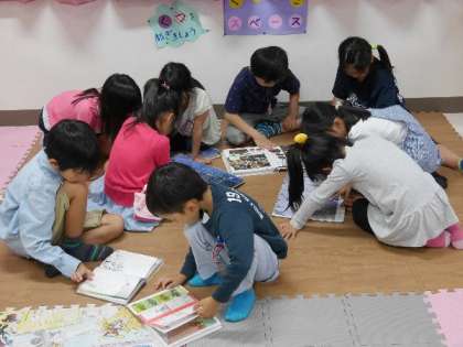 1年生が図書室で読書をしています。4月から何冊読めたかな?10冊以上読めている子がたくさんいます。もっともっと本読もうね。