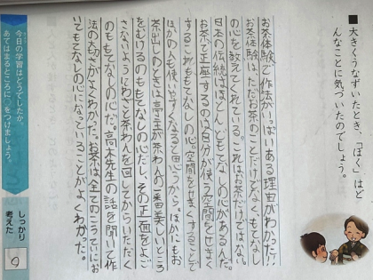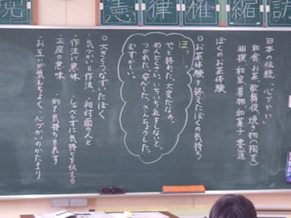 道徳の時間は、教科書の教材文「ぼくのお茶体験」の学習をしました。