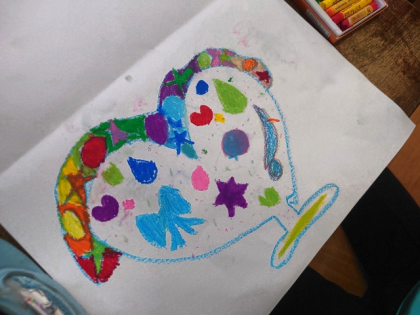 図工科の時間は、パスを使って「かきごおりの うつわ」を描いています。