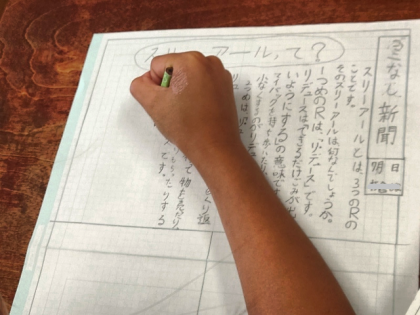社会科の時間は、「住みよいくらしとごみ」の学習のまとめとして、学んだことをもとに新聞づくりをしています。