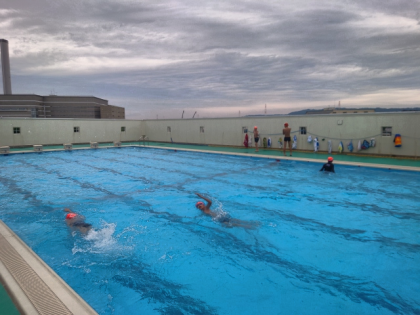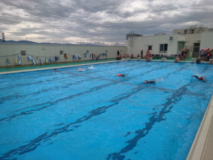 今日は、水慣れの後、バタ足、クロールの練習をしたり、泳力の検定を行ったりしました。