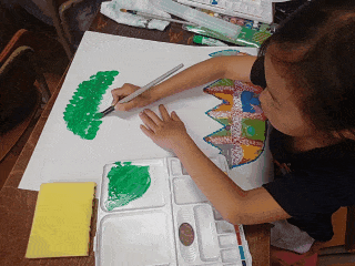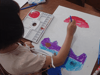 前回は「うつわ」を描きましたが、今日はかき氷に絵の具のシロップをかけていきます。