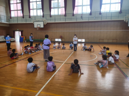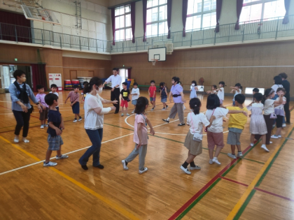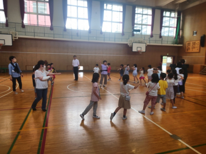 今日は、いきいき活動に参加している子どもたちを中心に、焼野地域活動協議会の中田会長はじめ地域の皆さん、また、区役所の方も来校され、みんなで一緒に「鶴見音頭」の練習をしました。