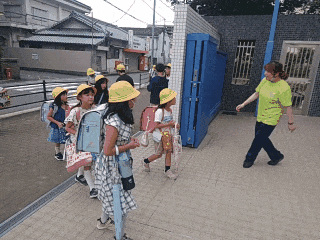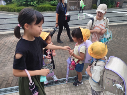 代表委員会の子どもたちが大きな声で元気にあいさつしています。