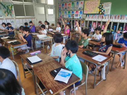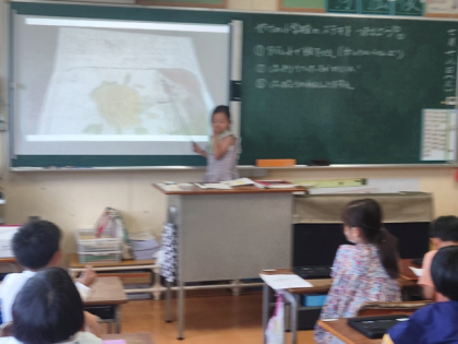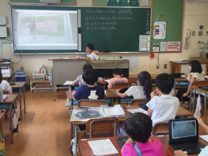 生活科の時間は、自分たちが見つけた焼野小学校の「ステキ」について、自分で撮った写真を見せながら発表しました。