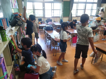 午前中は、各学級で学習をしたり、お楽しみ会をしたり、通知表を渡したり、夏休みの生活について話をしたり、大そうじをしたりしてすごしました。