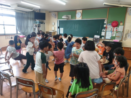 午前中は、各学級で学習をしたり、お楽しみ会をしたり、通知表を渡したり、夏休みの生活について話をしたり、大そうじをしたりしてすごしました。