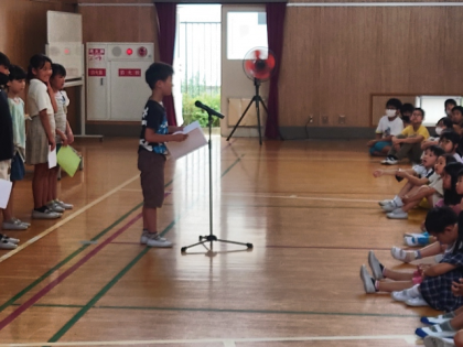 最後に、3・4年の各学級の代表が、「1学期がんばったこと」を発表しました。