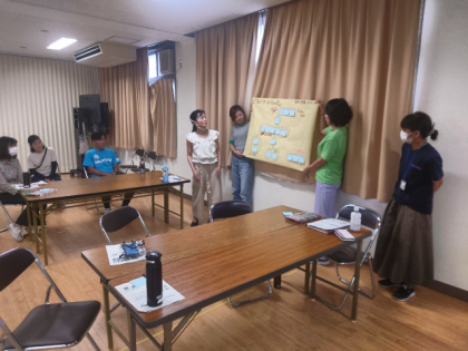 庭山先生から、ポジティブ行動支援の基本的な考え方についてご教示いただいた後、グループに分かれて「めざす子どもの姿」について話し合い、研修を深めました。