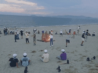 キャンプファイヤーを楽しんでいます。