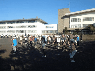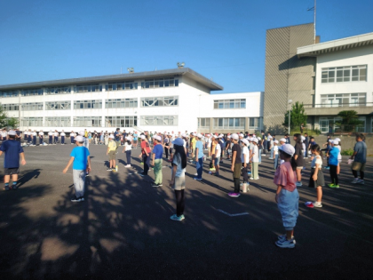今日利用している各団体が一同に集まり、朝のあいさつをしたり、ラジオ体操をしたりしました。