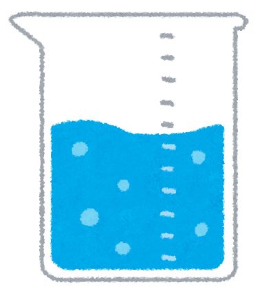 1 コップに水100ミリリットルと40グラムの食塩を入れて、2〜3分よくかきまぜ、食塩水を作る。(底に少しとけのこりができる。)