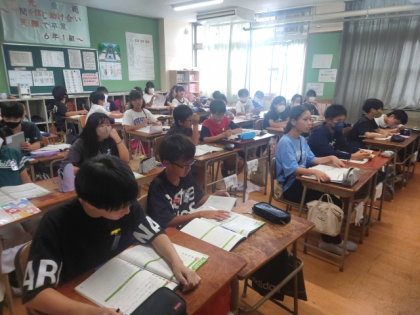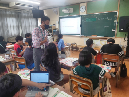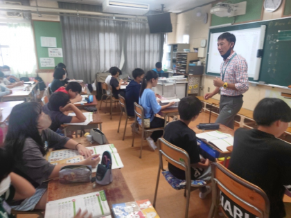 英語科の時間は、"Where did you go in this summer?""I went to〜"の表現を使って、夏休みの思い出を伝える英語の表現を学習しました。