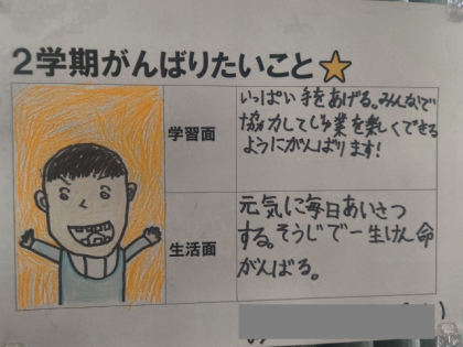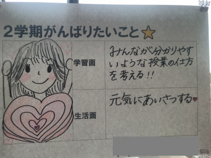 子どもたちと一緒に担任の「がんばりたいこと」も掲示していました。