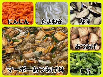マーボーあつあげ丼は、あつあげを使用してボリュームを出し、気温が高い季節に食がすすむよう香辛料をきかせた丼です。