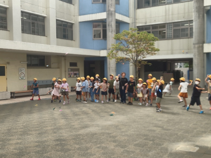 だれの紙ひこうきがいちばん遠くまで飛ぶのか、競争です。