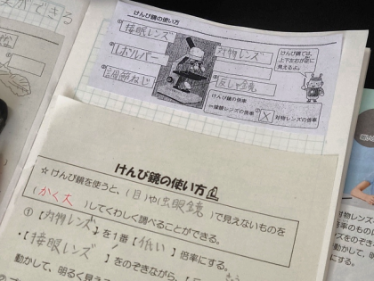 理科の時間は、顕微鏡の使い方を調べて、ノートにまとめてました。