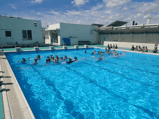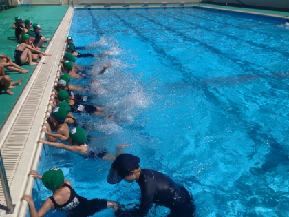 今日は、顔を水につけたり、体を水に浮かせたり、プールサイドに手をかけながらばた足をしたりする練習をしました。