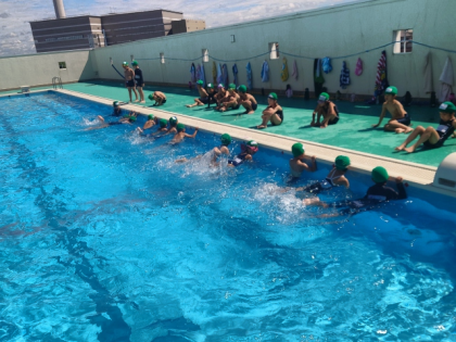 学習の後半は、プールの端から端まで25mを歩いたあと、子どもたちが大好きな「宝さがし」をしました。