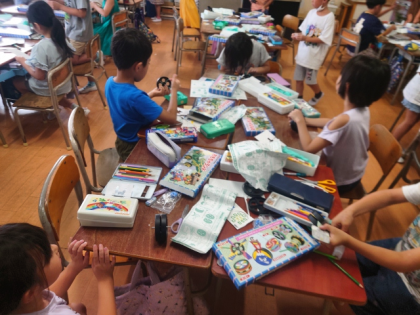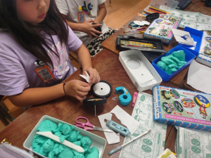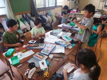 生活科の時間は、おもちゃづくりの教材とねん土を使って、おきあがりこぼしを作っています。