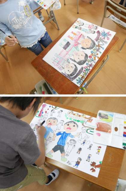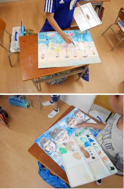 3年生の線画に色がついてきました。細かい描写がきれいですね。