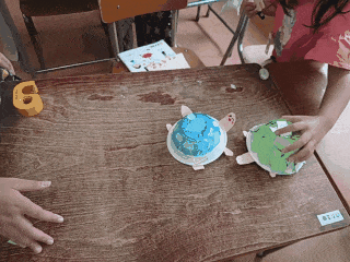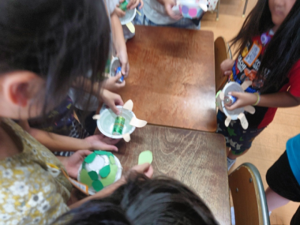 教室で、試しに何回も転がして、うまく転がるように改良したり工夫したりしました。