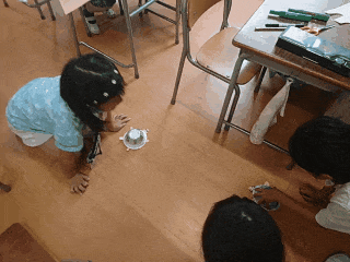 教室で、試しに何回も転がして、うまく転がるように改良したり工夫したりしました。