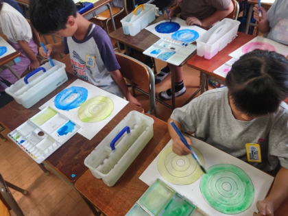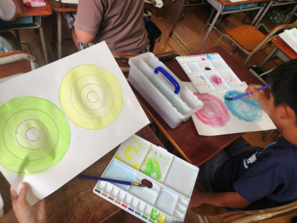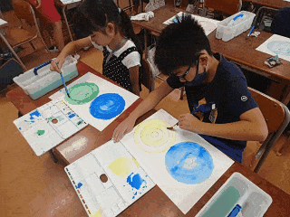 図工科の時間は、絵の具の濃淡を使って、色が少しずつ変化するように着色しました。