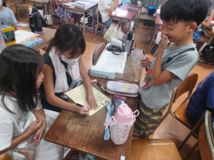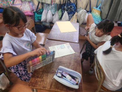 メンバーで協力して、2学期の係の掲示物を作っています。