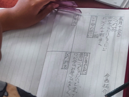 今日は、物語を初めて読んだ感想をノートに書きました。
