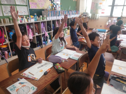 どんな切り方ができるのか、たくさんの子どもたちが前に出て、みんなに伝えていました。