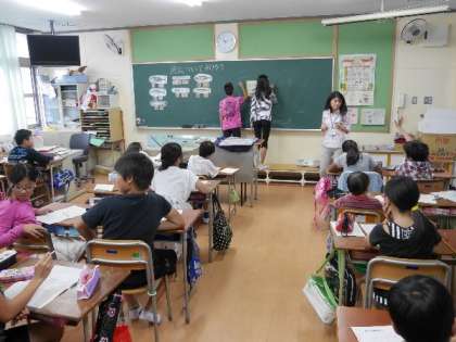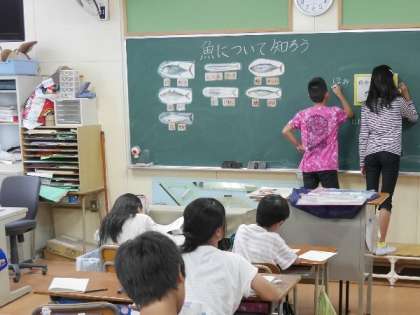 今日は鶴見区の栄養教諭の先生に来ていただき、栄養について5年生が学習しました。この季節、とてもおいしい魚について学習しました。