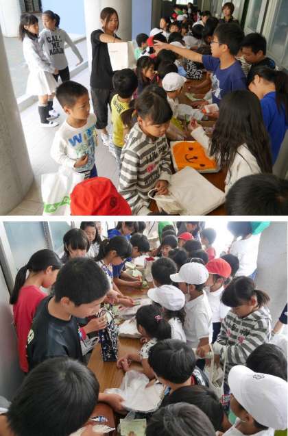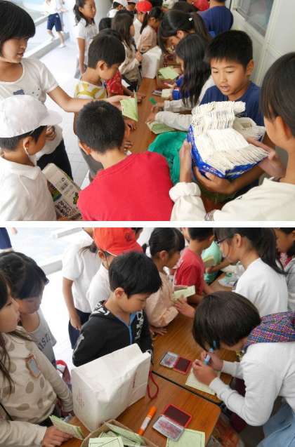 今日は「やけのの8の日」です。たくさんの子ども達が牛乳パックを持ってきてくれました。児童会運営委員の児童が受付をしてハンコを押してあげています。ひさしぶりなので、たくさんの子ども達に混雑しました。リサイクルにご協力ありがとうございます。
