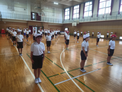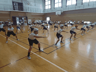 運動会に向けて、今日は、団体演技のソーランの練習をしています。