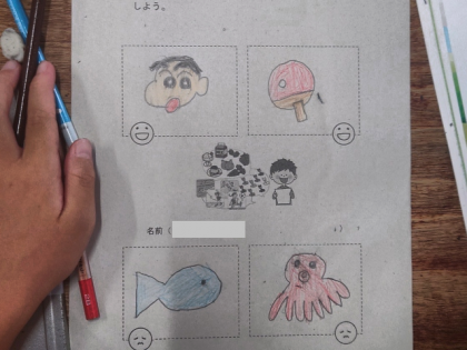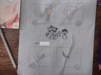 この時間は、自己紹介するために、カードに自分の好きなものと、好きではないものを描きました。